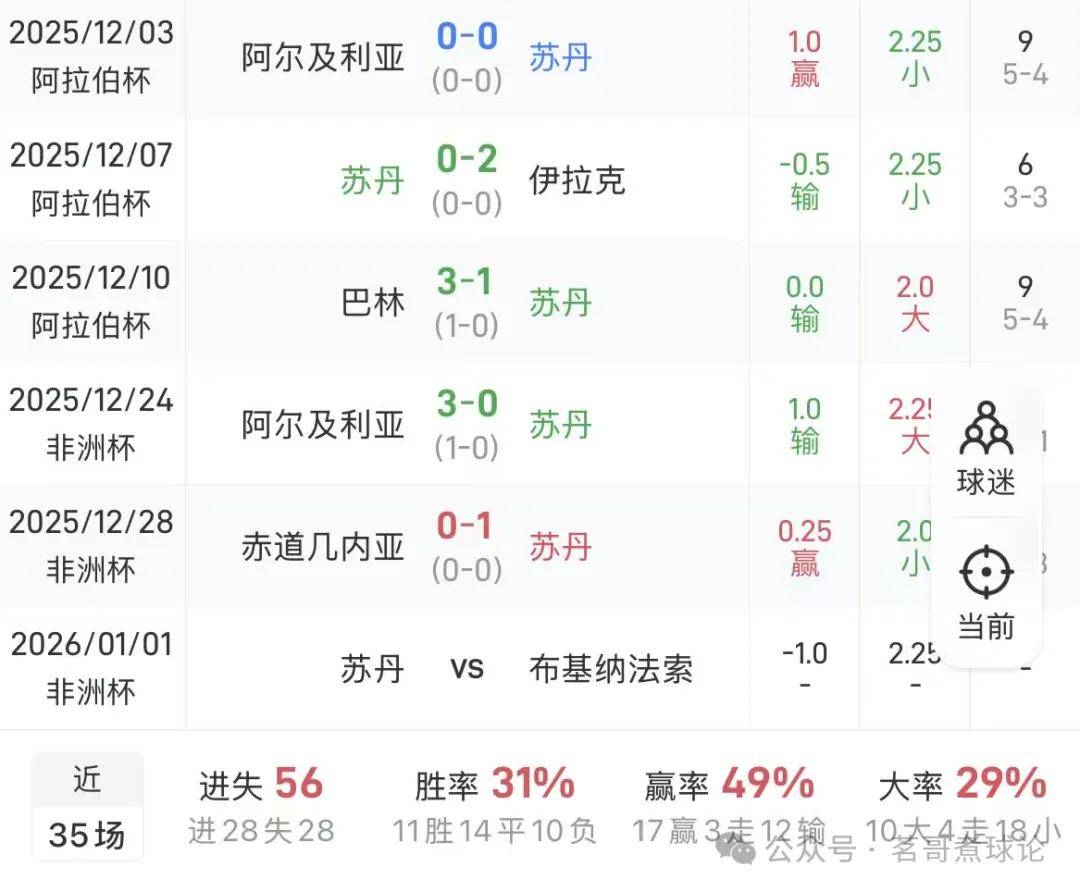 2026-01-01雨燕直播,NBA直播,世界杯直播,足球直播,台球直播,体育直播,世界杯,欧洲杯,苏超直播,村BA直播,苏超联赛,村超,村超直播2026 年 1 月 1 日 凌晨 0 点,非洲杯小组赛 E 组收官生死战一触即发,苏丹迎战劲旅布基纳法索。作为决定出线名额的终极博弈,本场形势微妙至极:苏丹只需 1 分即可锁定“成绩最好的小组第三”惊险上岸,布基纳法索亦需 1 分稳固小组第二的晋级席位;加之“打平即双赢”的默契背景,是苏丹的“铁桶阵”苟到最后,还是布基纳法索拒绝“养生”强行破局?这场充斥着算计与防守的心理战看点拉满。下面茗哥带来双方详细分析!!